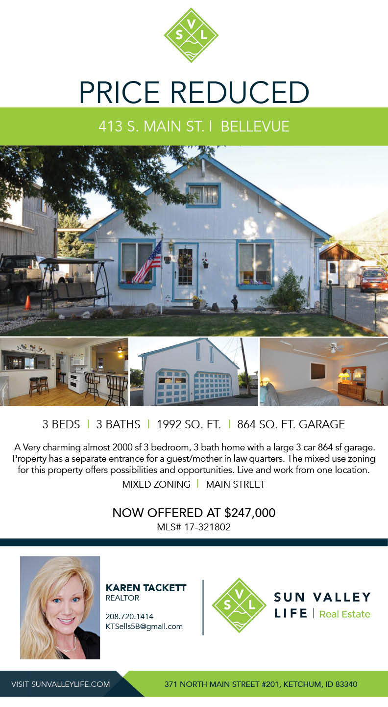 The price on 413 S. Main St. Bellevue has been reduce by $12,500 and is now being offered at $247,000. Click Here for More Info.